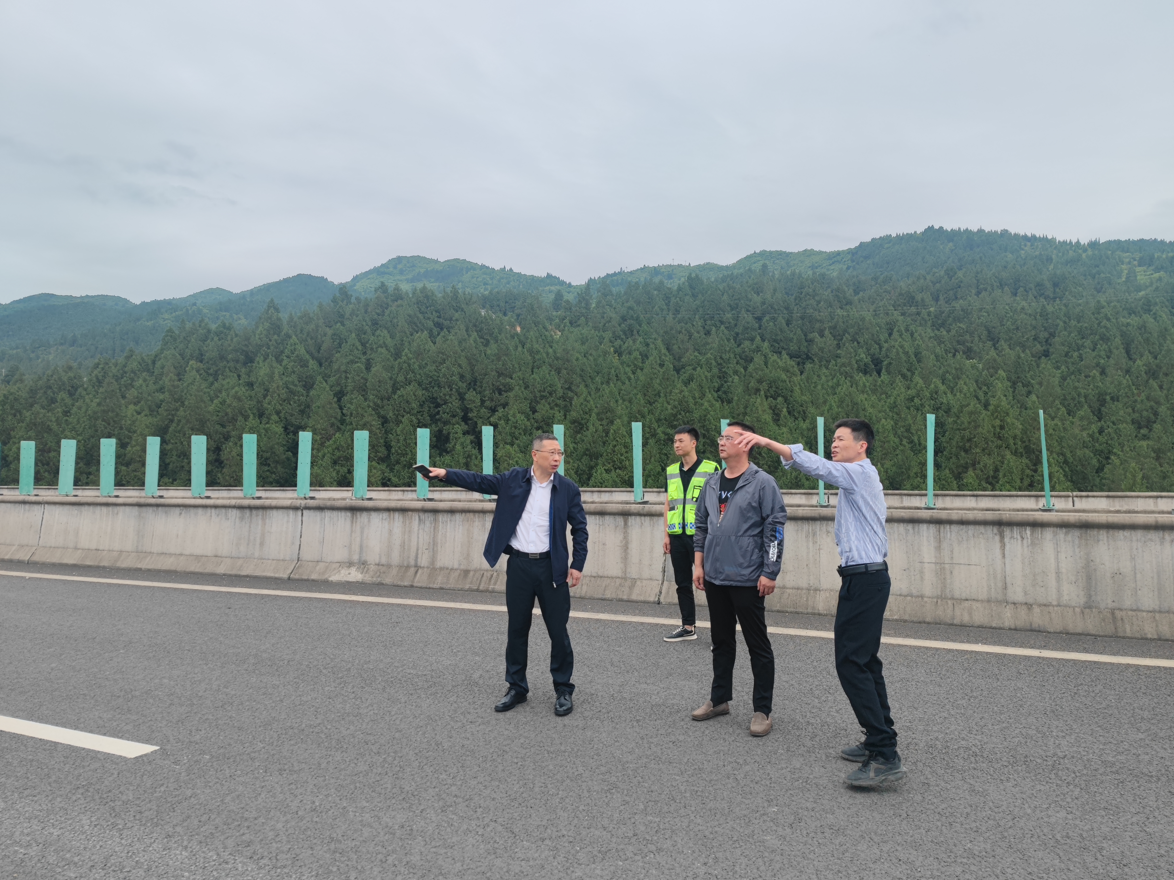 5月23日,敘古公司黨委書記、董事長劉小波一行前往敘古高速二郎互通檢查指導工作,黨委委員、總經理助理王業剛參加檢查。