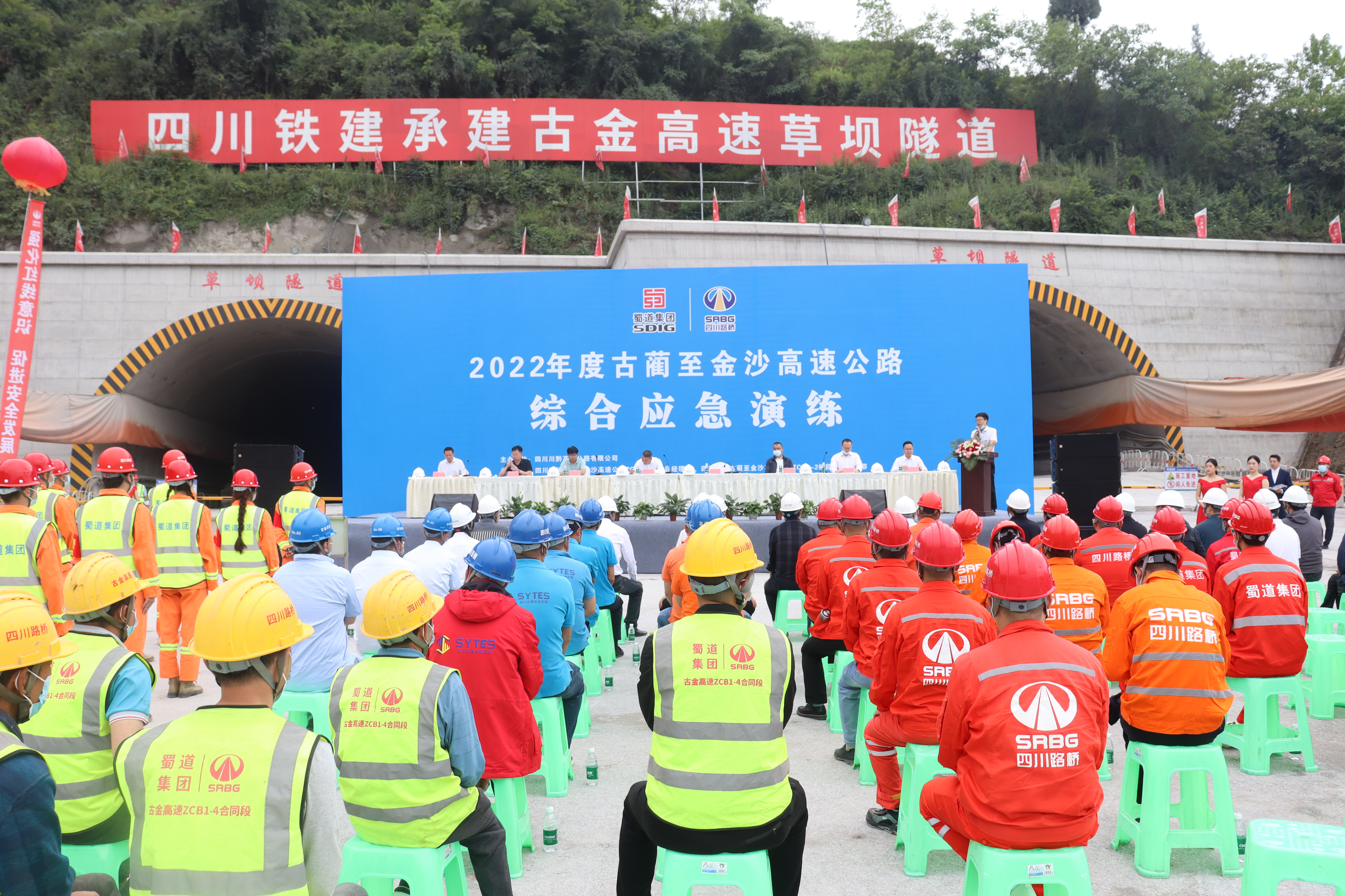 2022年5月12日,值第十四個全國防災減災日之際,由四川川黔高速公路有限公司主辦,古金高速ZCB1-2標承辦的“2022年度古藺至金沙高速公路綜合應急綜合演練”在古金高速草壩隧道開展。古藺縣副縣長謝剛、古藺縣應急管理局局長石含琪、川黔公司黨委副書記、總經理喬勝俊出席現場觀摩指導演練活動,川黔公司副總經理高鵬斌任現場總指揮。